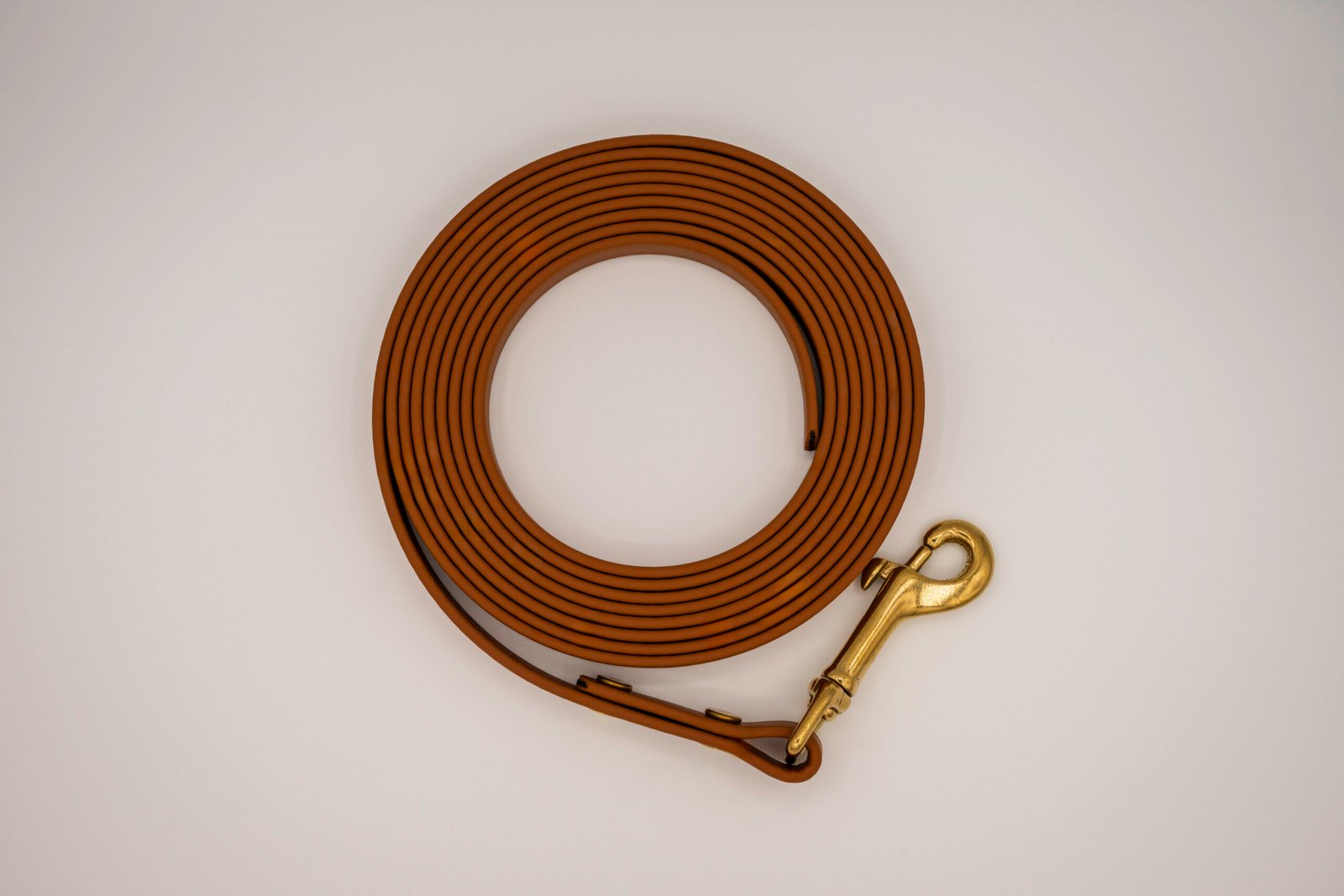 Standard Biothane® combines strength with softness, giving you a line that’s durable yet easy to handle. Its waterproof, dirt-resistant surface ensures it stays clean and flexible, no matter how muddy or wet the conditions. The solid brass hardware resists rust and wear, providing reliable performance session after session.